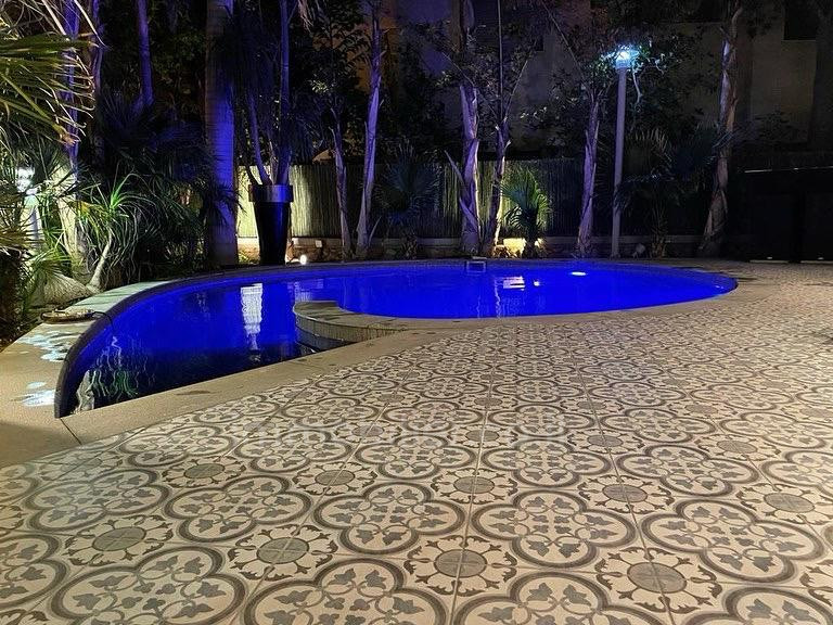 L'Extérieur : Une Pièce Maîtresse Le jardin de 250 m², qui ceinture l'ensemble de la propriété, est une véritable prouesse d'aménagement. En son centre trône une piscine en béton au design exclusif en forme d'escargot, offrant une esthétique organique et apaisante. Les espaces sont savamment répartis entre terrasses en pierre (80%) pour un entretien aisé et zones arborées pour la fraîcheur.